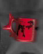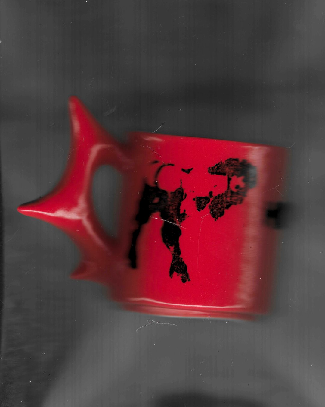 spiked mug in cherry red gloss with printed detailing.
